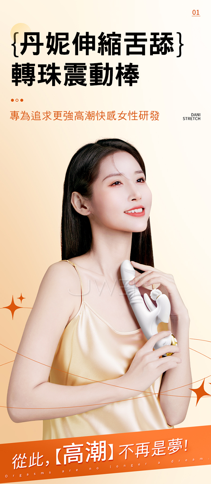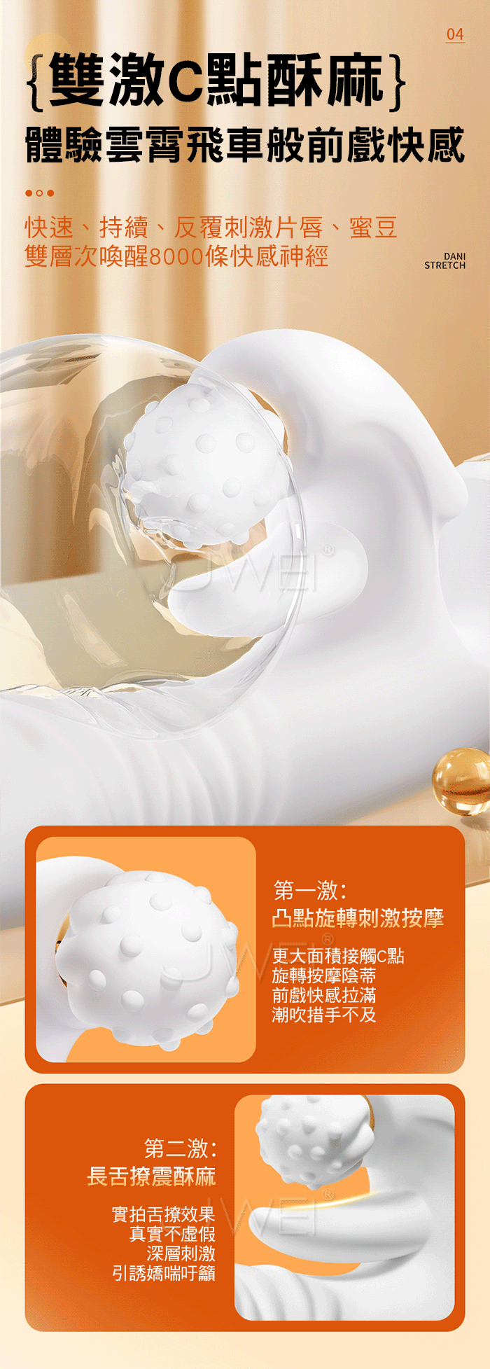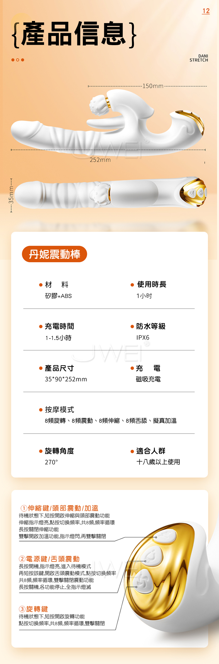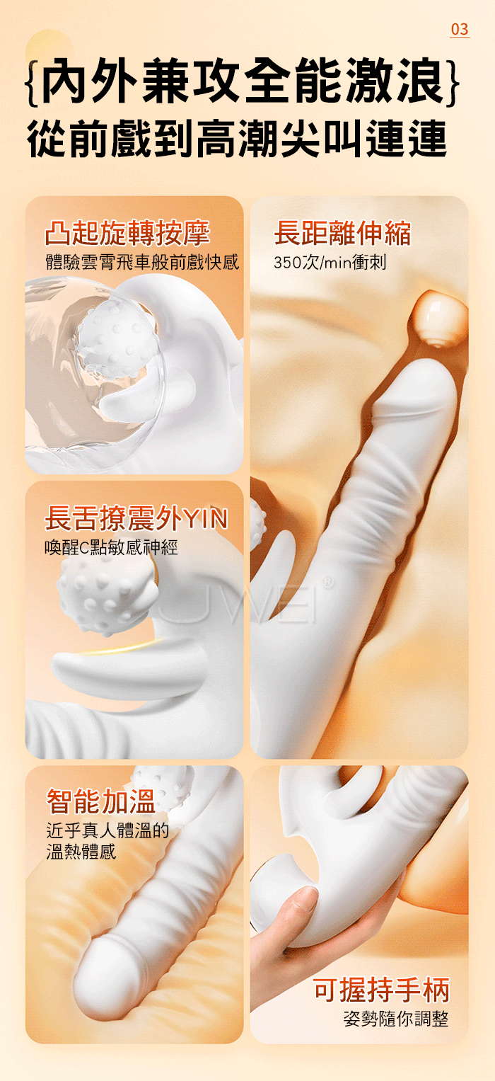 丹妮.8段凸點旋轉揉豆長舌撩震+8段伸縮觸頂多功能智能加溫按摩棒
