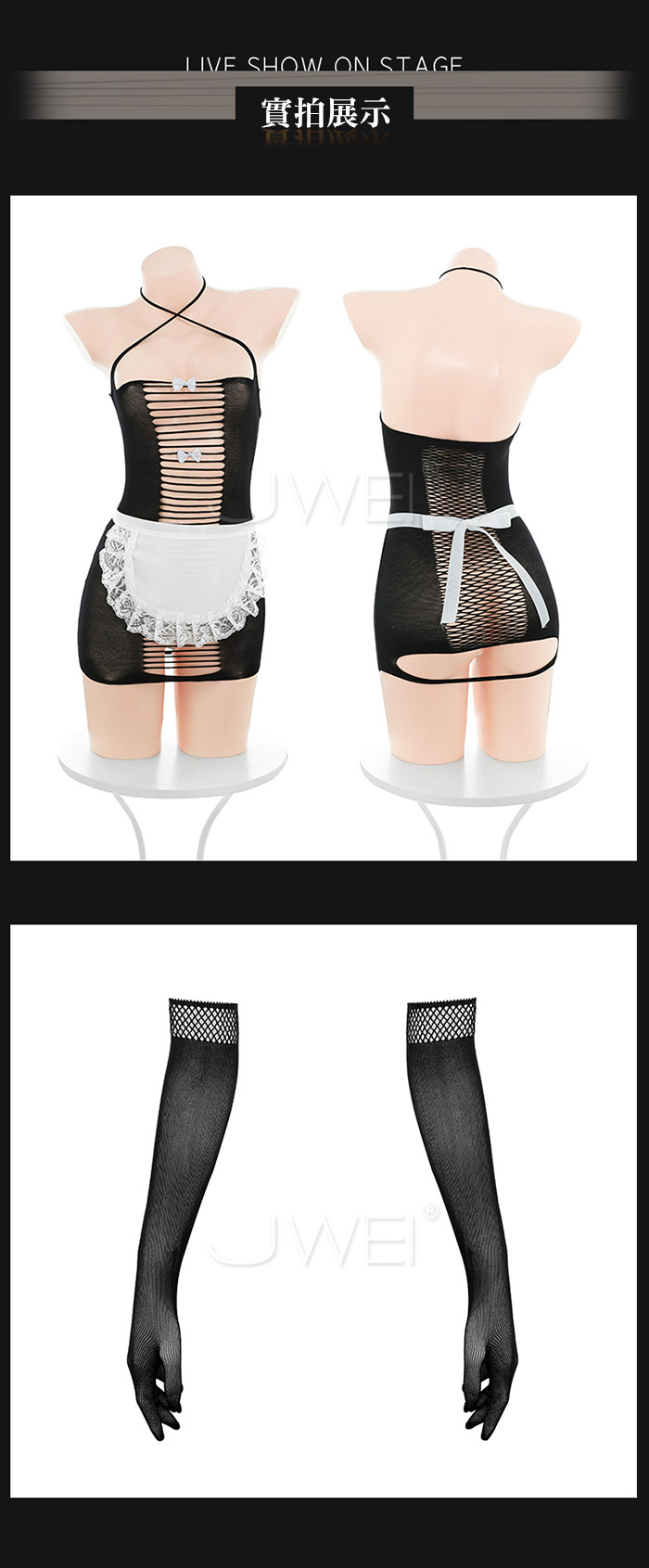 ►您現在的位置:首頁>嬌俏女僕.火辣條紋露胸可撕網衣女樸套裝-黑【連身網衣+圍裙+手套*2】