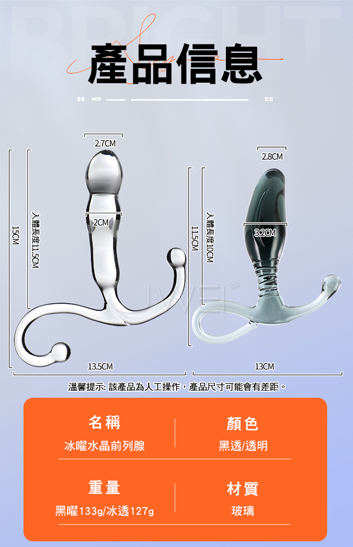 冰耀水晶.深入頂腺 水晶玻璃爆爽前列腺按摩器【黑耀】