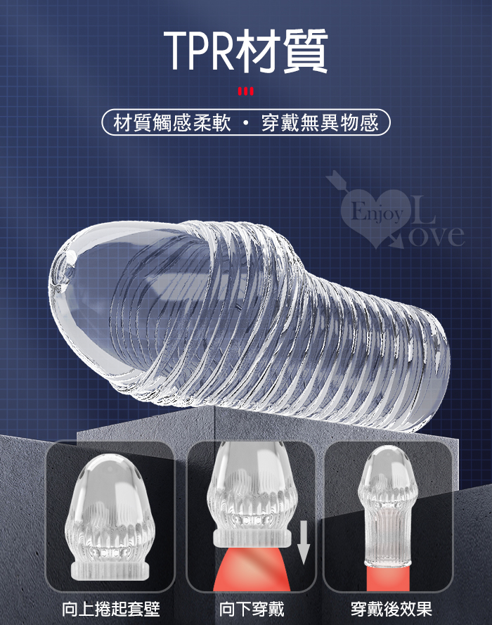 派蒂菈 ‧ HOYTT 霍伊特 凹凸橫線螺紋刺激/隱身/持久/武裝強化老二造型套 - 頭部出精口設計