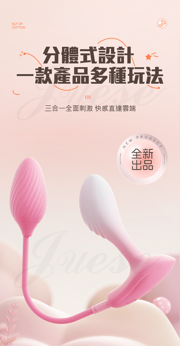►您現在的位置:首頁>謎姬 MizzZee.棉花糖精靈 10段變頻分體式雙重爆擊USB充電震動器
