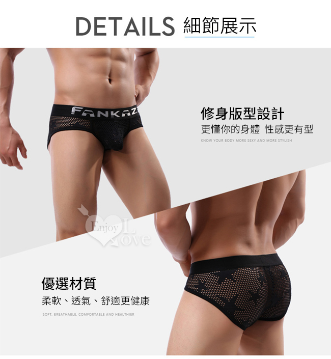 ►您現在的位置:首頁>《 Enjoy Love 》星星網眼U凸囊袋低腰鏤空內褲 - 黑﹝L﹞