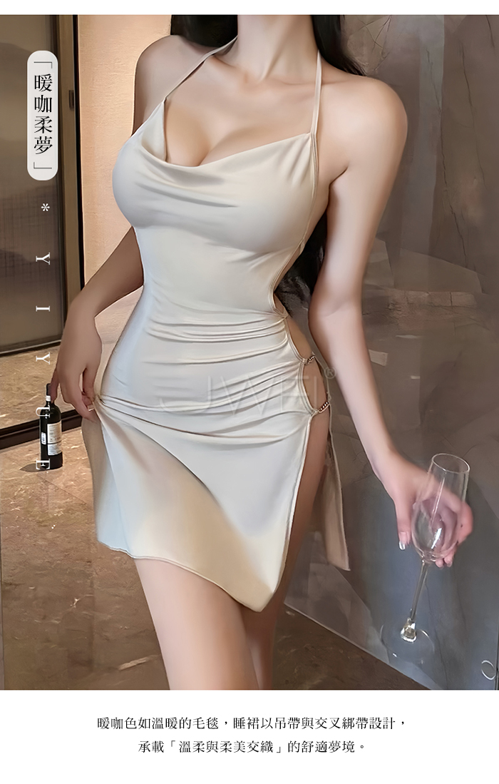 ►您現在的位置:首頁>綺夢暗香.優雅蕩領美背綴腰掛脖後繫帶睡裙【奶咖色】
