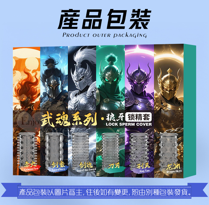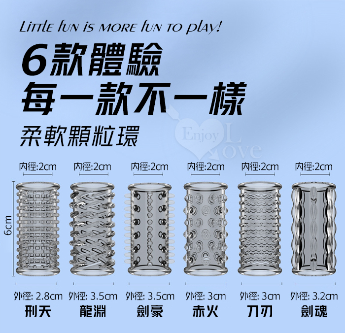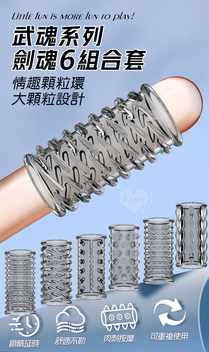 武魂系列.劍魂六組合套~顆粒入珠肉刺環繞鎖精延時陰莖加強環~成人性趣輔助用品-6款體驗裝﹝透明黑﹞
