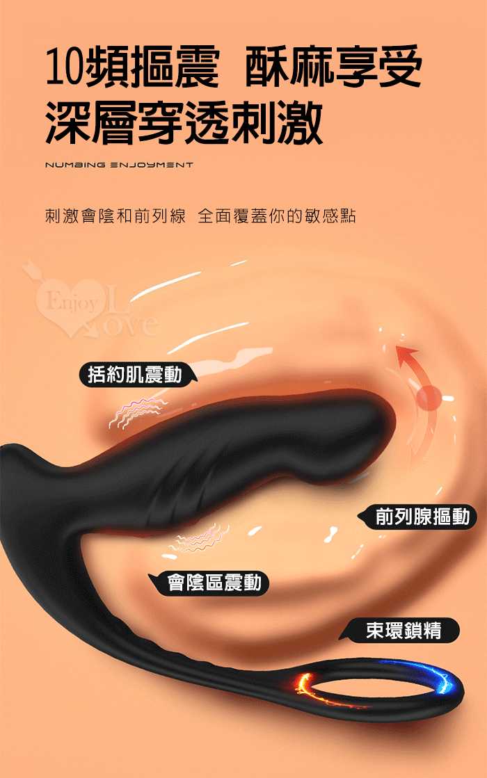 靈指衝擊 ‧ 無線遙控前列腺摳震樂肛塞按摩器﹝內摳外震/10頻摳動及超強震動/穿戴束環鎖精固定﹞