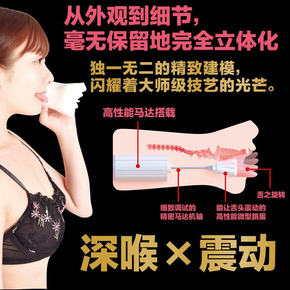 內部構造精緻到舌頭與牙齒完整重現,搭配豐富口腔機關,獨特真空結構再現她極強吸力的吸吮口交。