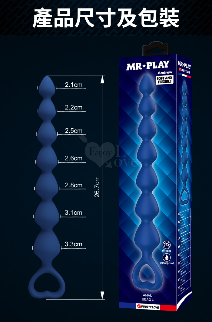 ►您現在的位置:首頁>MR‧PLAY ‧ Andrew 安德盧~男女通用愛心造型層層漸進拉珠後庭按摩棒-M﹝輕鬆入體/舒適矽膠親膚﹞