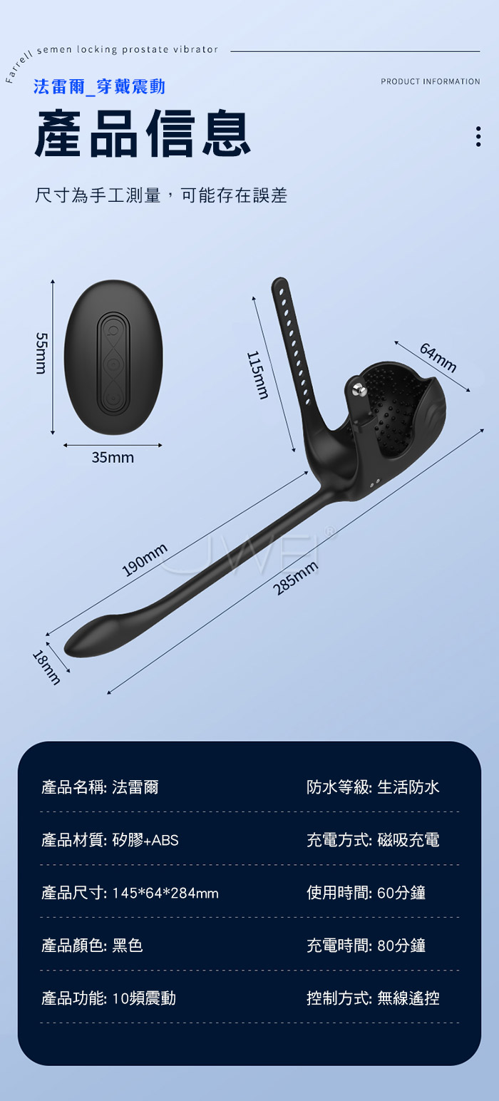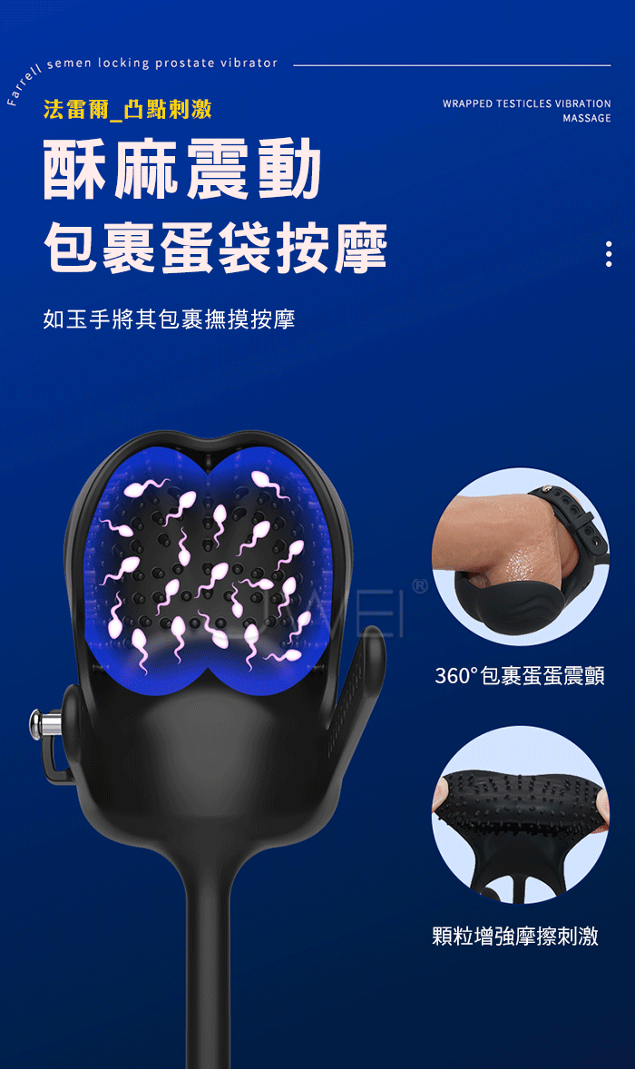 法雷爾.10頻遙控強震刺激 360度包覆蛋蛋 顆粒增強無射快感 束精穿戴前高按摩器