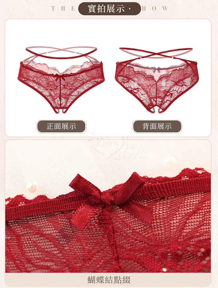 空氣感花蔓透紗·纏腰細帶|開襠免脫情趣內褲﹝紅﹞
