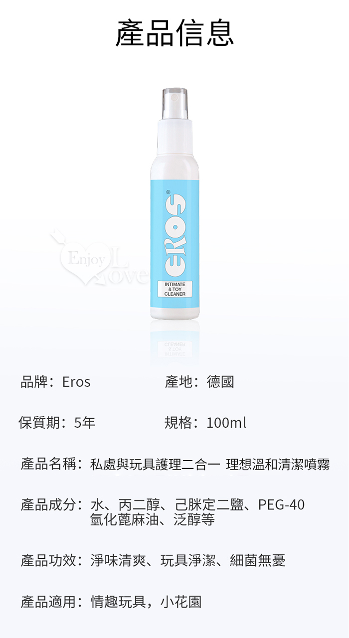 ►您現在的位置:首頁>德國Eros ‧ 一瓶雙效 私處與玩具護理二合一理想溫和清潔噴霧 100ml﹝大膽做 安心玩﹞