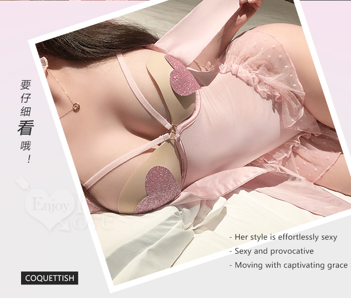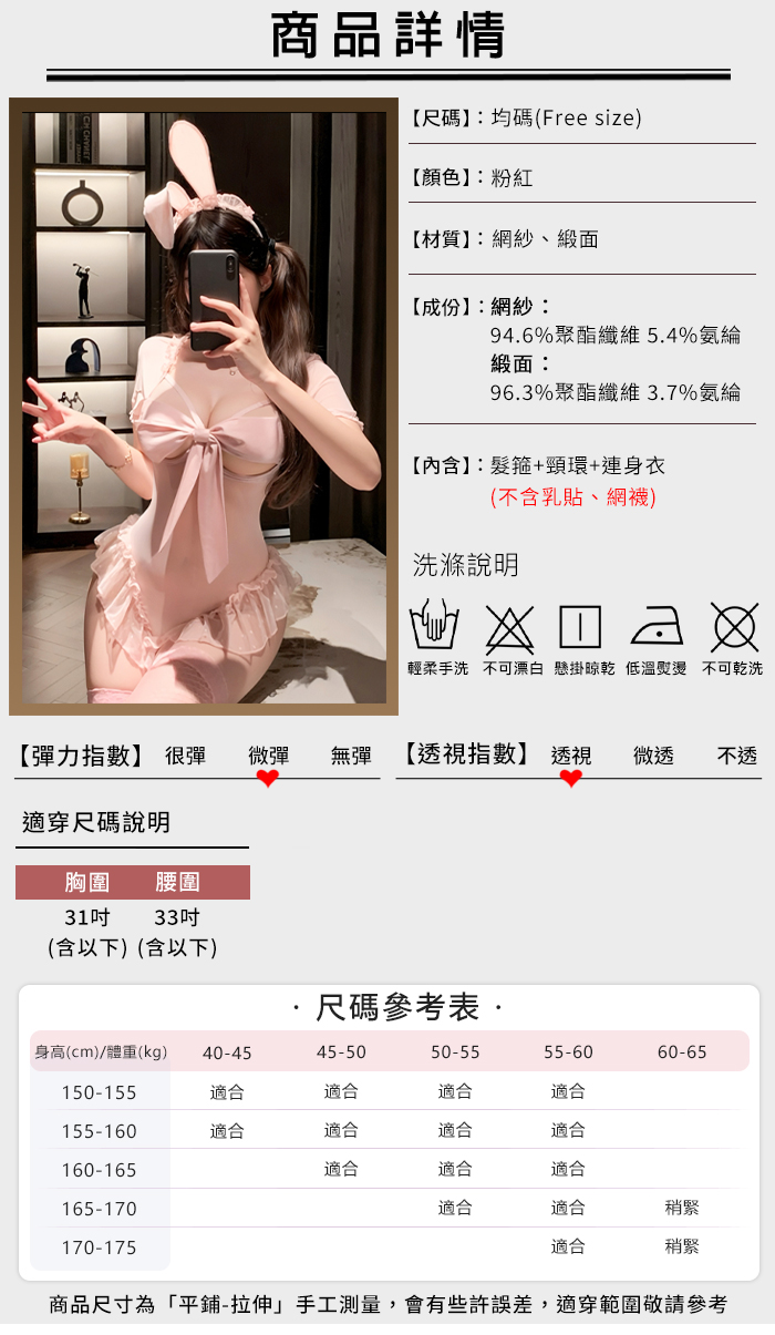 兔女郎角色扮演服!鋼圈托乳蝴蝶結高衩波點蕾絲開襠連身衣三件組