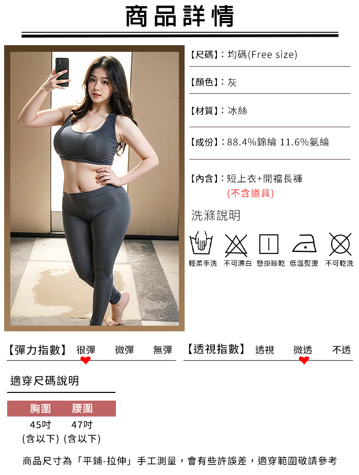 | 【棉花糖女孩】大尺碼情趣睡衣!冰絲順滑緊身小可愛 × 雙頭拉鍊免脫瑜珈褲|機能二件組﹝灰﹞